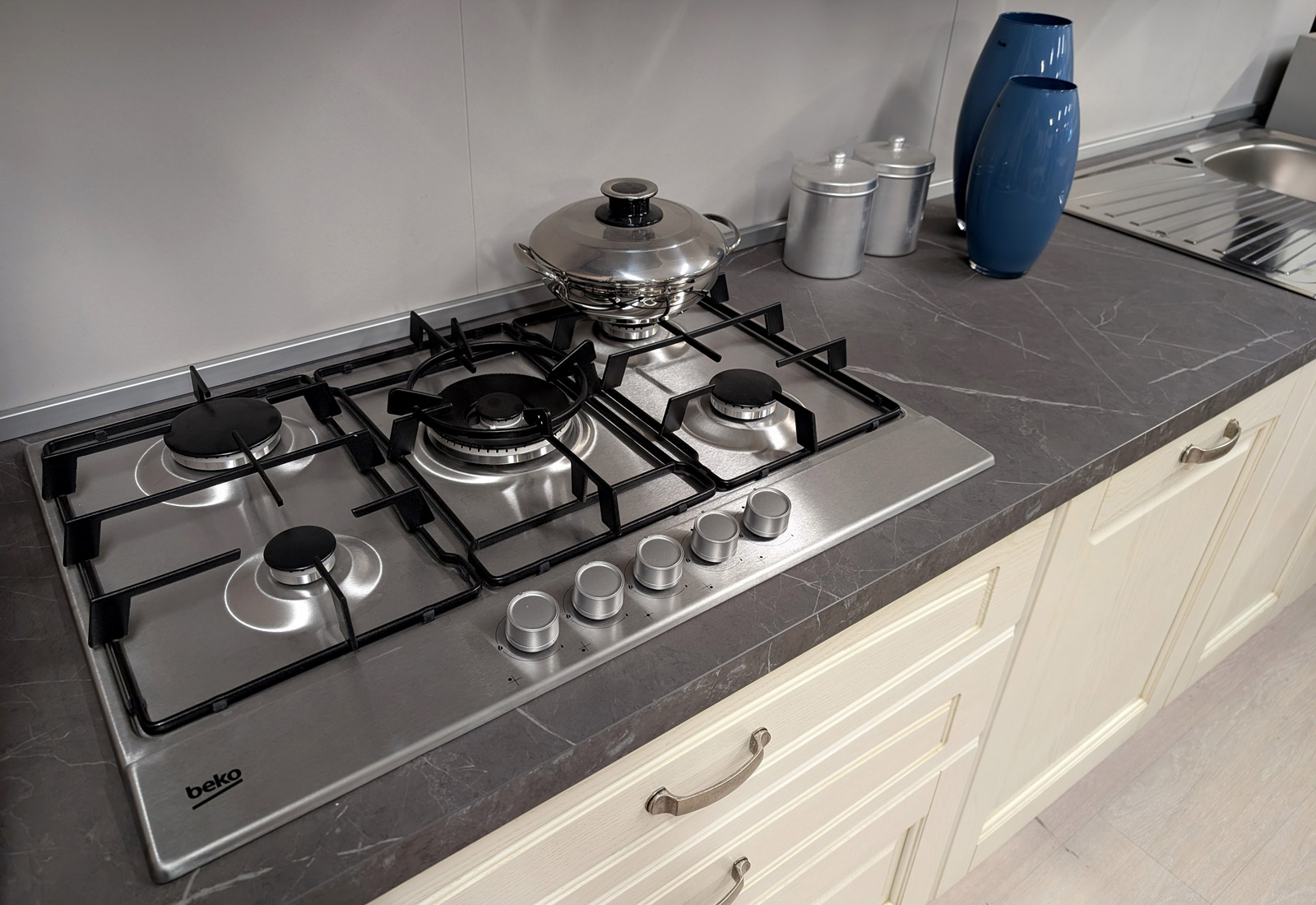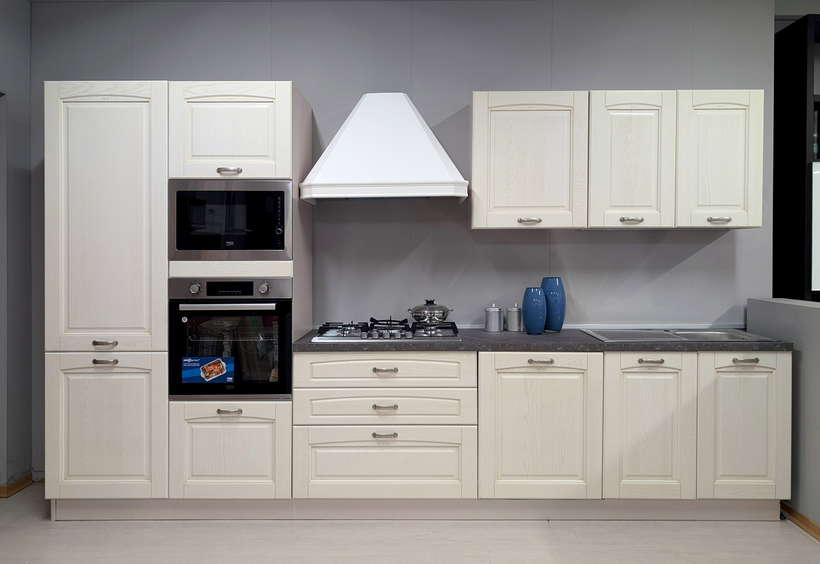 Lunghezza 360 cm, completa di 5 elettrodomestici Beko.