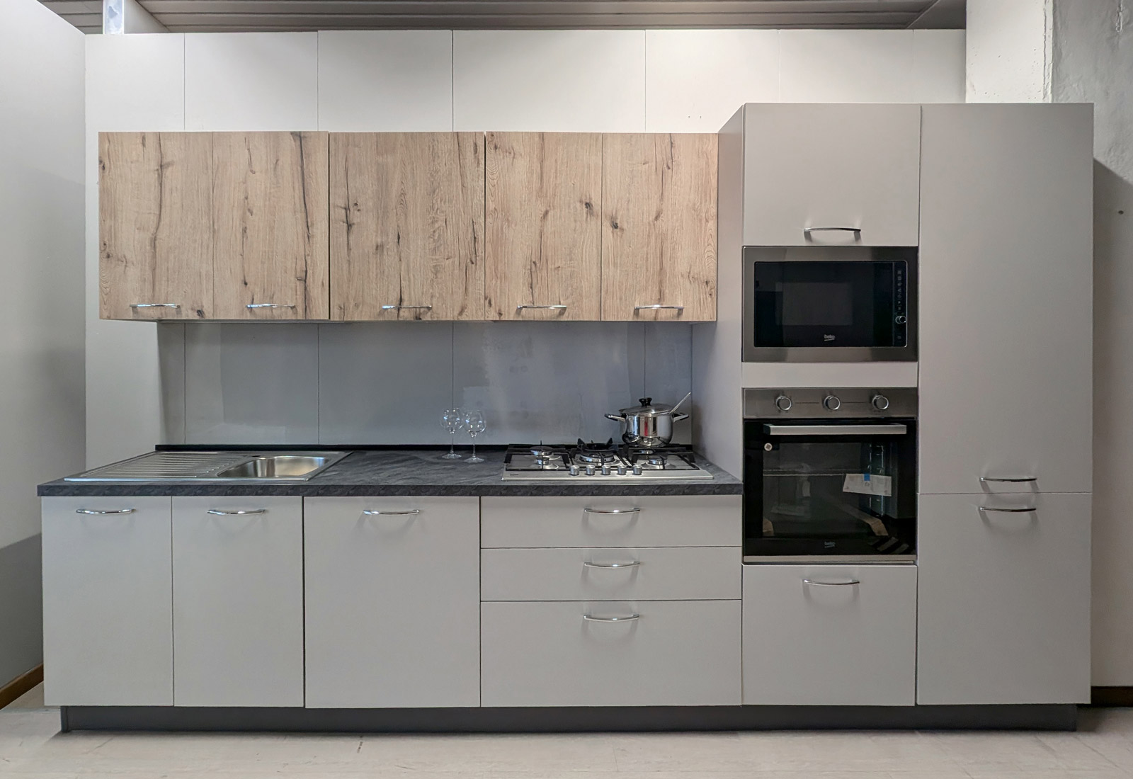 Lunghezza 360 cm, completa di 5 elettrodomestici Beko.