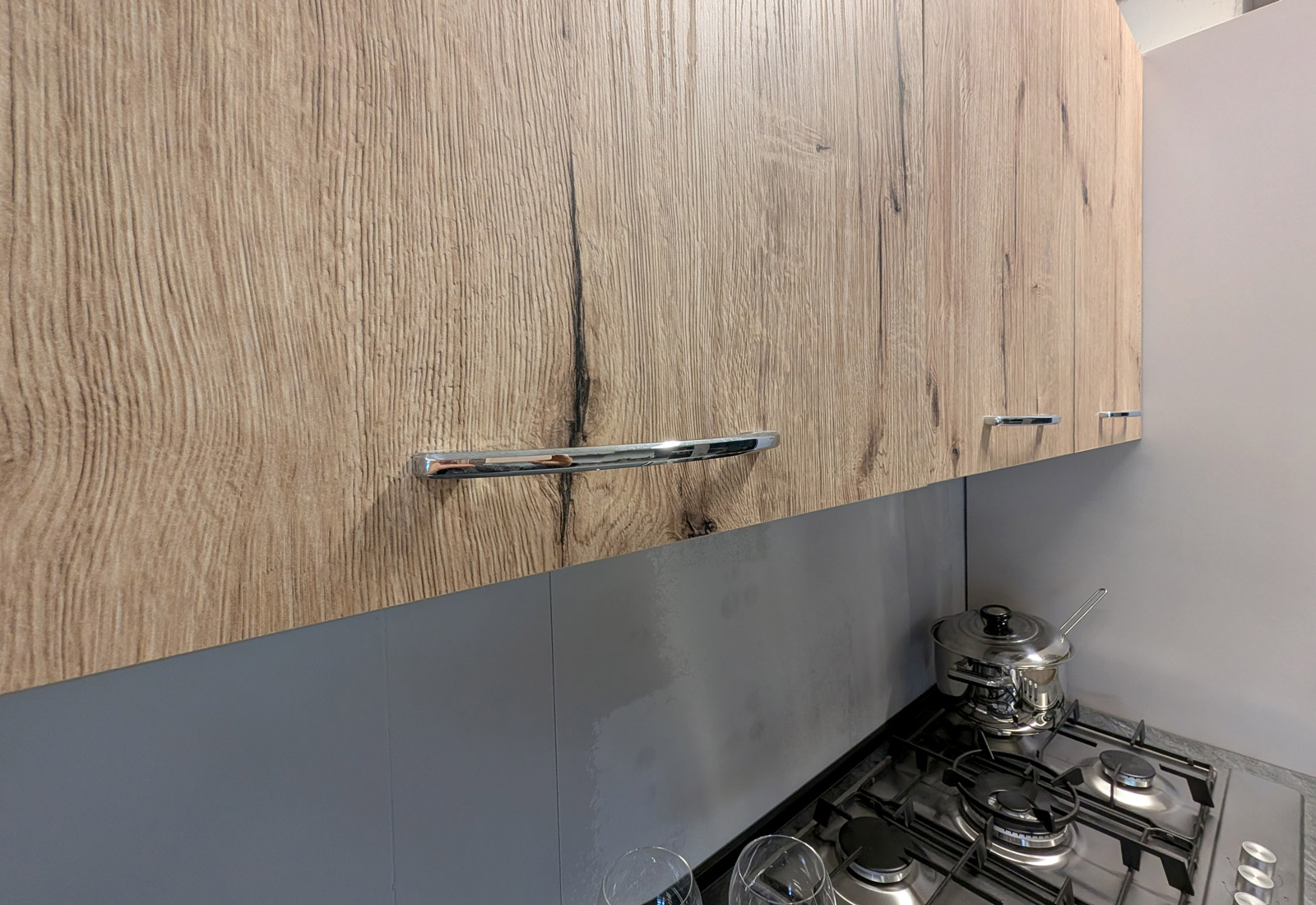 Ante color cemento bianco / effetto legno nodato.